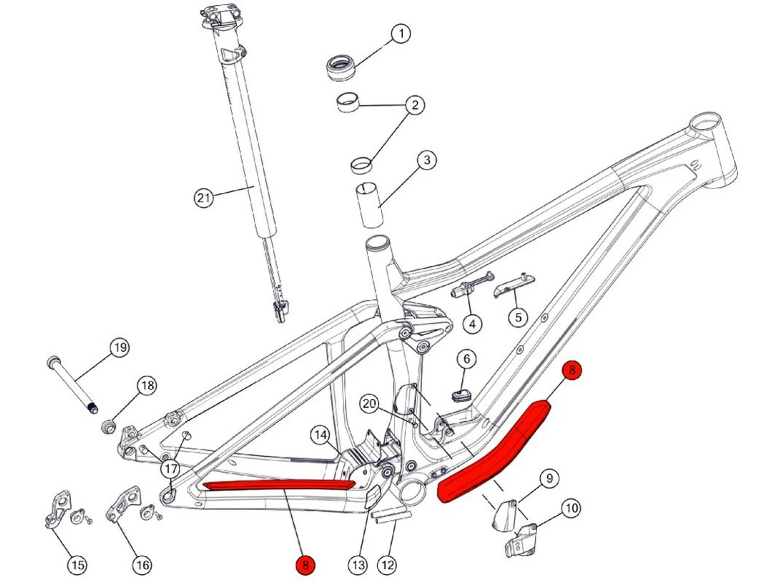 Kit de protections pour tube diagonal et base arrière (chaîne) BMC Speedfox Agonist 301199